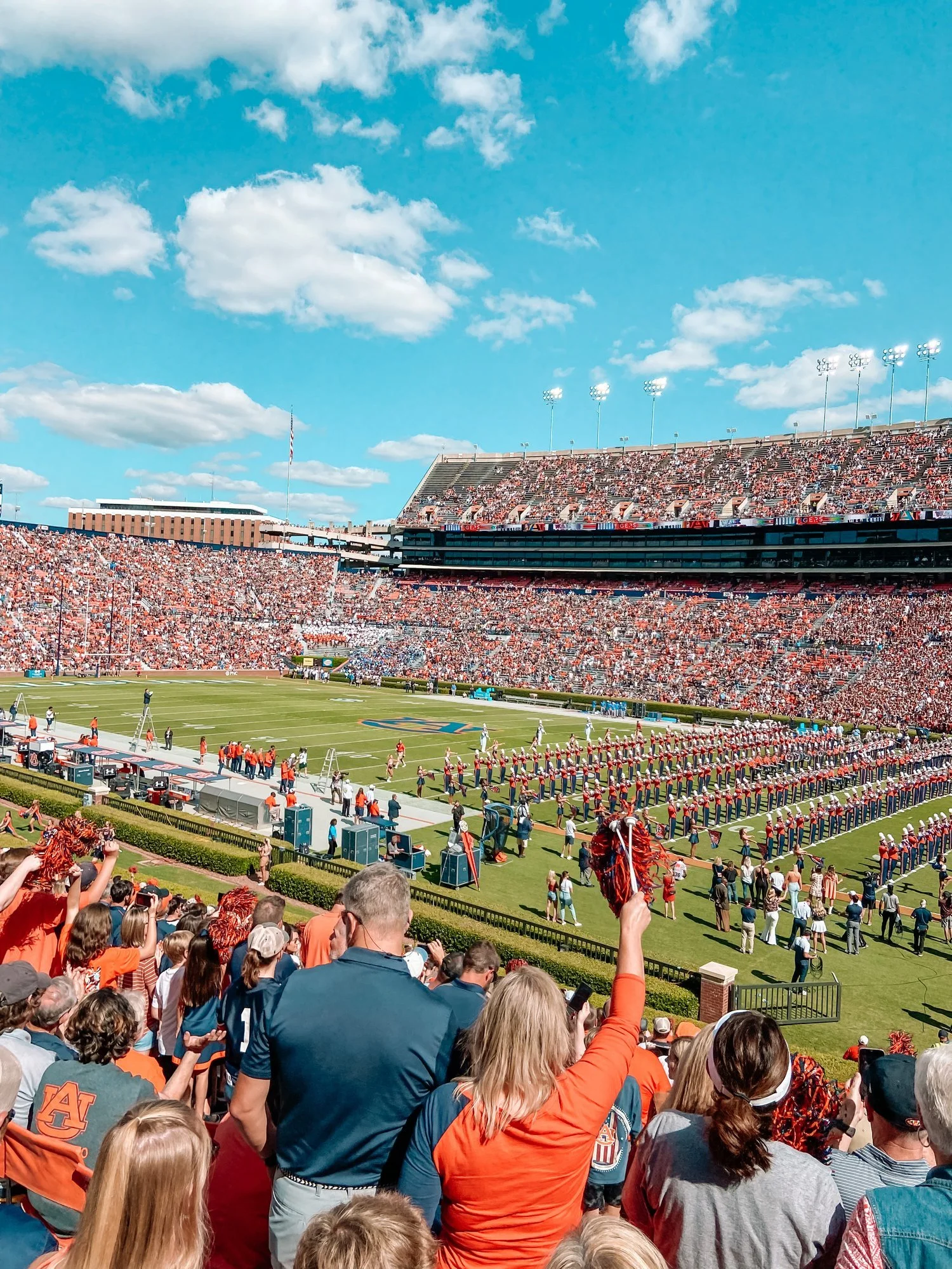 just like everyone congregates for church on sunday mornings, saturdays are reserved for football—and boy do they go all out. from the tailgates to the touchdown celebrations, it’s an experience to be had. the town pulses with energy leading up kickoff and everywhere you look, fans are greeting you with a warm “war eagle!”